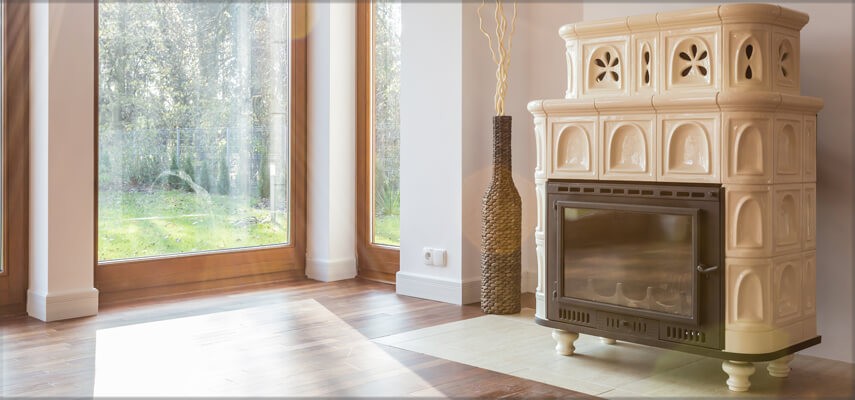 Tiled stoves - built with decorative tile adhesives and fireproof construction boards for traditional masonry heating